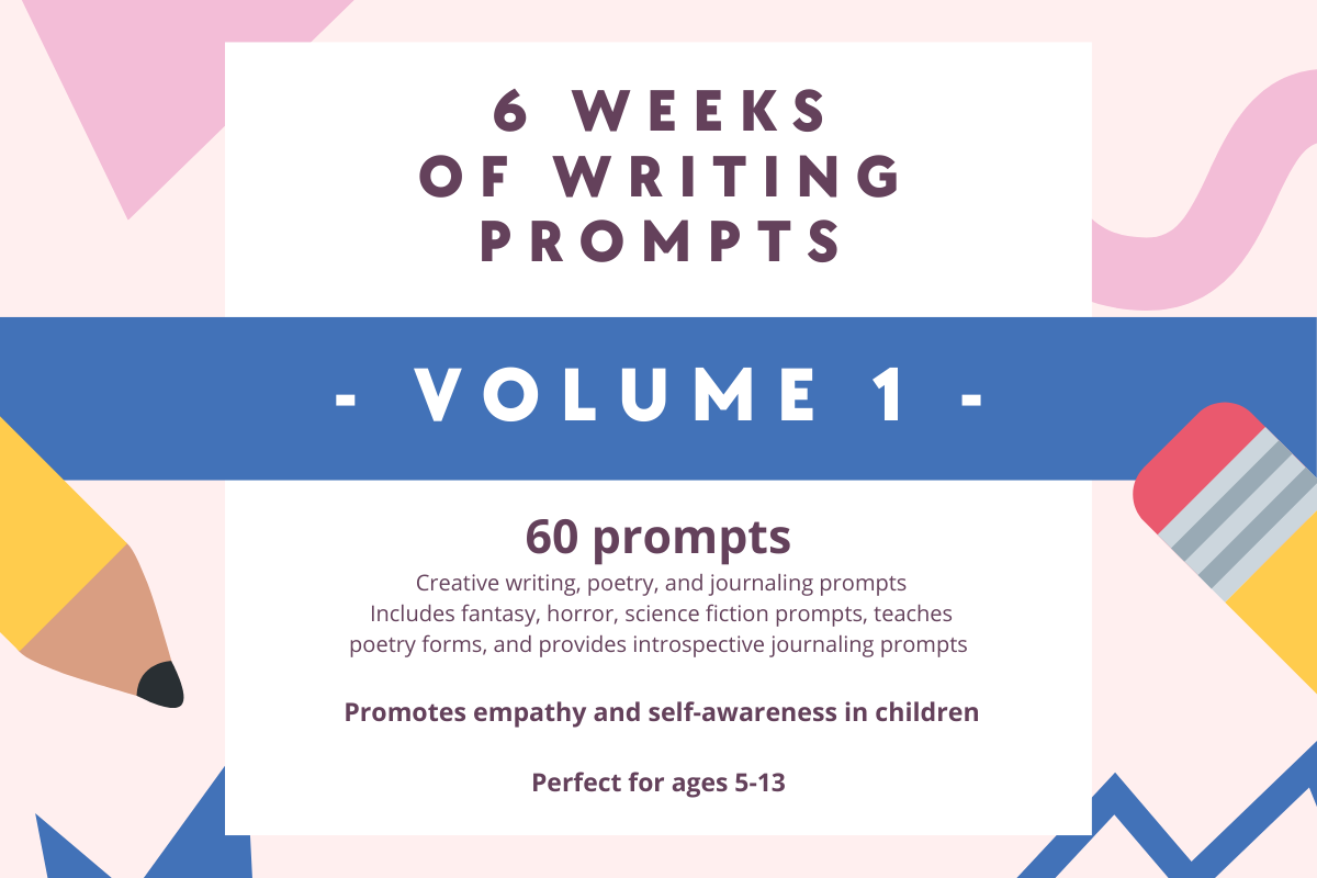 Creative writing, poetry, and journaling prompts. Includes fantasy, horror, science fiction prompts, teaches poetry forms, and provides introspective journaling prompts